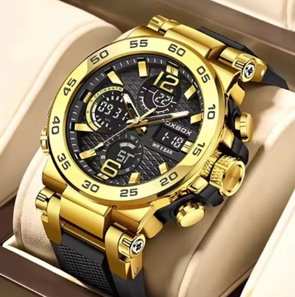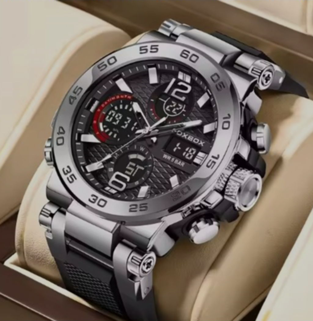 Reloj de hombre FOXBOX Ligge, nuevo modelo de moda, multifuncional con doble pantalla, de silicona, luminoso, deportivo y casual, resistente al agua